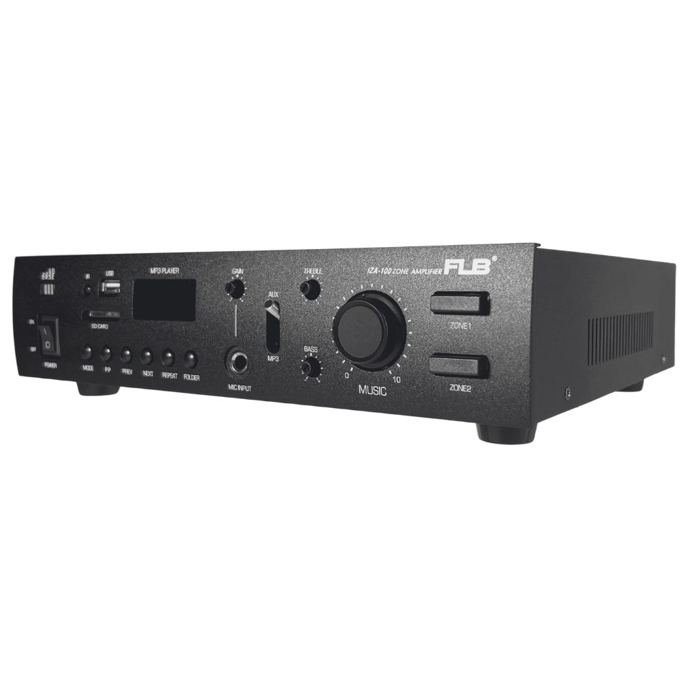 يقدم مضخم الصوت FLB iza-100 تجربة صوتية غنية ومرنة للاستخدامات المكتبية والتجارية. يتميز هذا المضخم بتصميمه العملي وواجهته الأمامية البديهية التي تتيح لك التحكم بسهولة في جميع وظائفه. سواء كنت ترغب في تشغيل الموسيقى من خلال منفذ USB أو توصيل ميكروفون لإجراء العروض التقديمية، فإن FLB iza-100 يوفر لك المرونة التي تحتاجها. بالإضافة إلى ذلك، يدعم المضخم ميزة تقسيم المناطق، مما يتيح لك التحكم في مستوى الصوت بشكل مستقل في مناطق مختلفة .