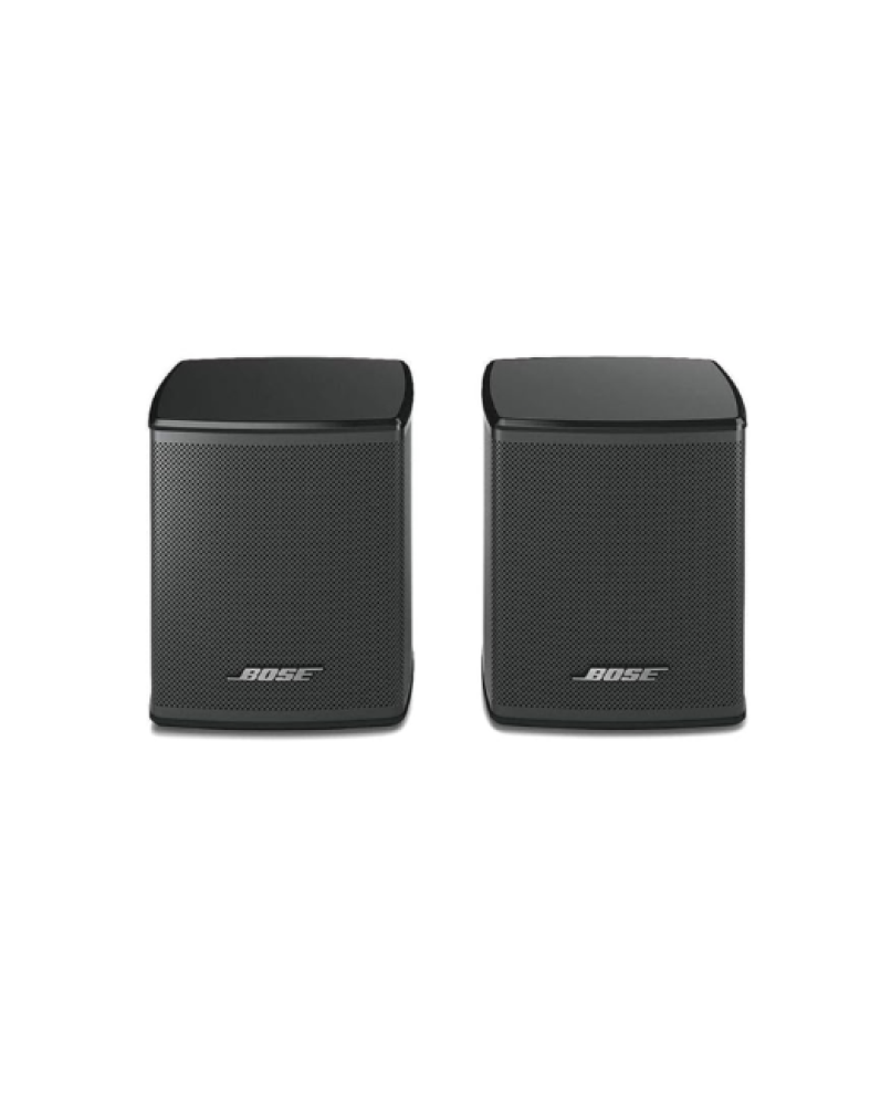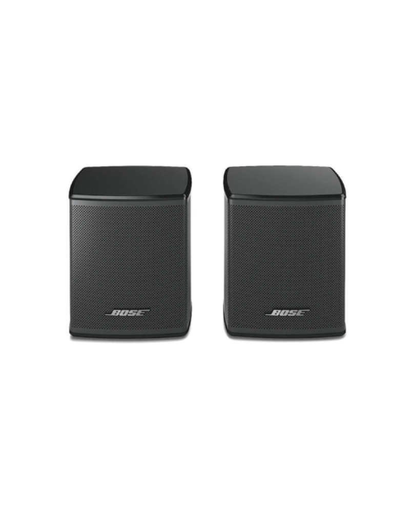 ساوند بار ذكي جديد من Bose بدولبي أتموس، باللون الأسود، مع سماعات محيطية لاسلكية (زوج) موديل Bass 500