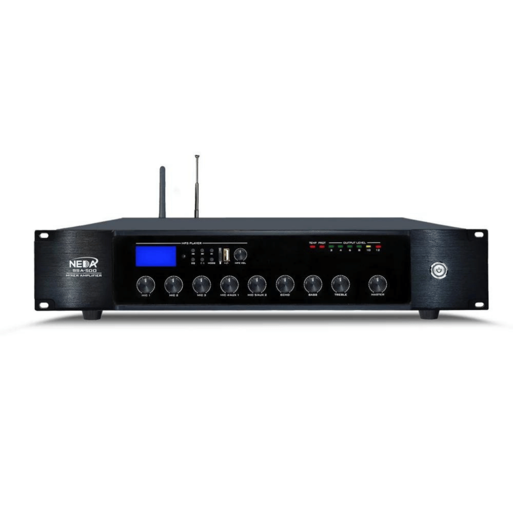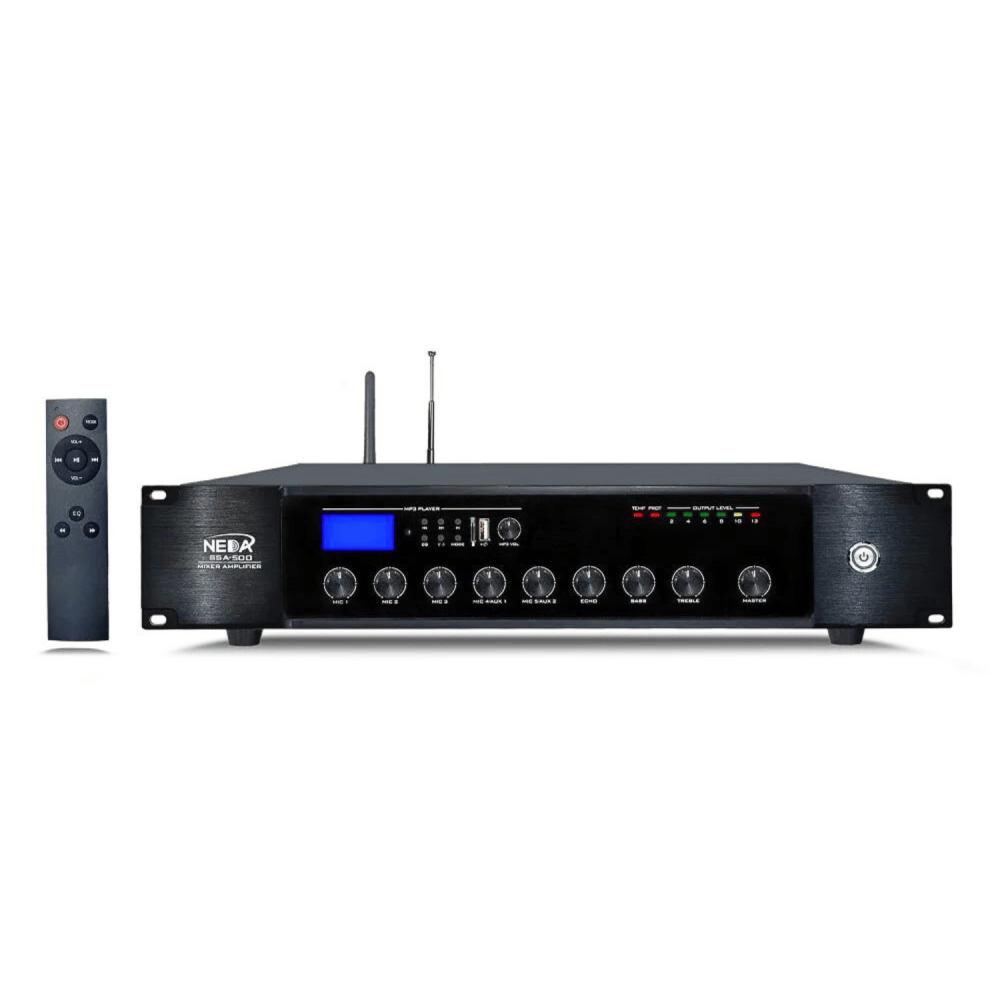 جهاز NEDA SSA-800 هو مضخم صوت ذو قدرة عالية تصل إلى 800 وات، مثالي للأماكن الواسعة مثل المساجد، الفعاليات الكبيرة، والحفلات. يتميز بجودة صوت نقية وإمكانية توصيل متعددة عبر البلوتوث، USB، وAUX، مما يسهل توصيله وتشغيله من أي مصدر صوتي تفضله.