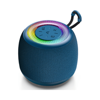 سماعة بلوتوث ميني محمولة JYX باللون الأزرق مع بطارية تدوم 24 ساعة، إضاءة LED، تكنولوجيا TWS ستيريو، فتحة بطاقة TF