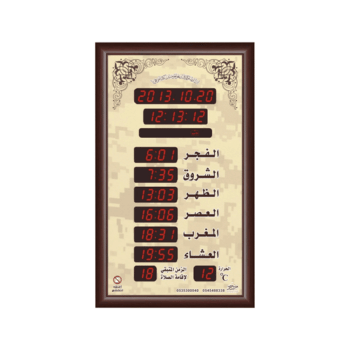 - ساعات الصلاة الجدارية – مناسبة للمنازل والمساجد، تعرض الأوقات بشكل واضح وبحجم كبير.
