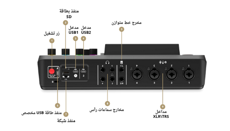 - عدد كبير من المداخل يصل ل 4 مداخل للمايكروفونات و4 مخارج للـ Headphones ومخرج مستقل لل Monitor