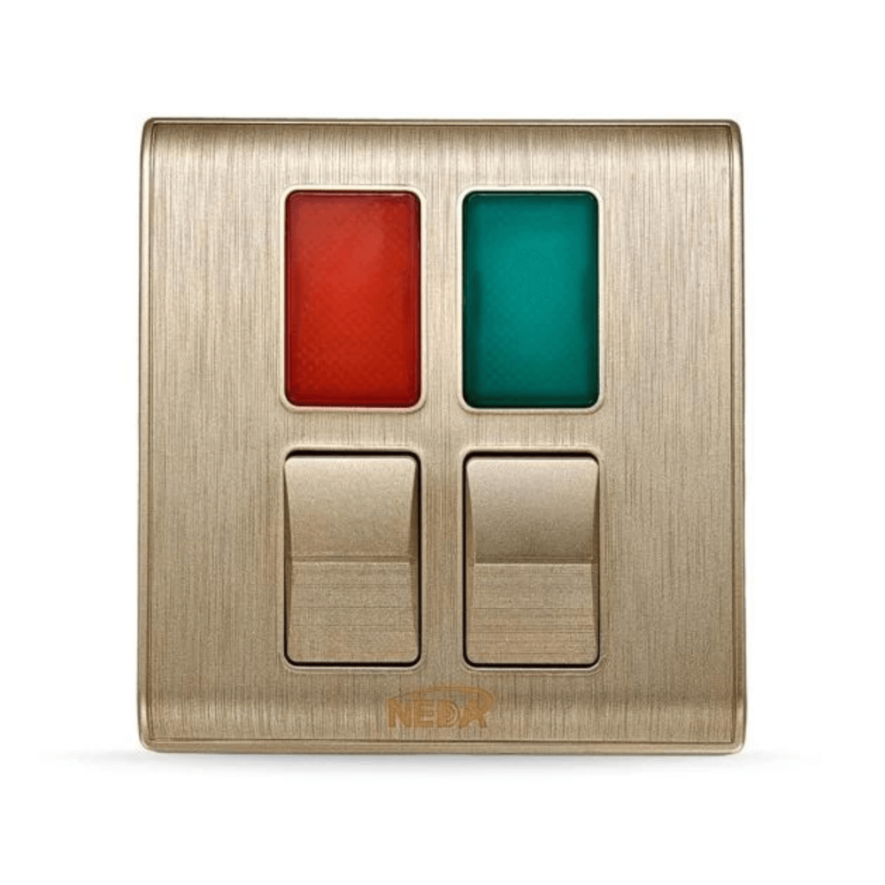 يعتبر مفتاح الطفاي الكهربائي المزدوج مع لمبات إشارة حلاً مثالياً للتحكم الدقيق والفعال في تشغيل وإيقاف الأجهزة الكهربائية المختلفة اطار لون ذهبي. يتميز هذا المفتاح بتصميمه البسيط وسهولة استخدامه، مما يجعله مناسبًا للاستخدام المنزلي والصناعي. بفضل لمبات الإشارة، يمكنك بسهولة معرفة حالة تشغيل الجهاز دون الحاجة إلى فحصه بشكل مباشر.