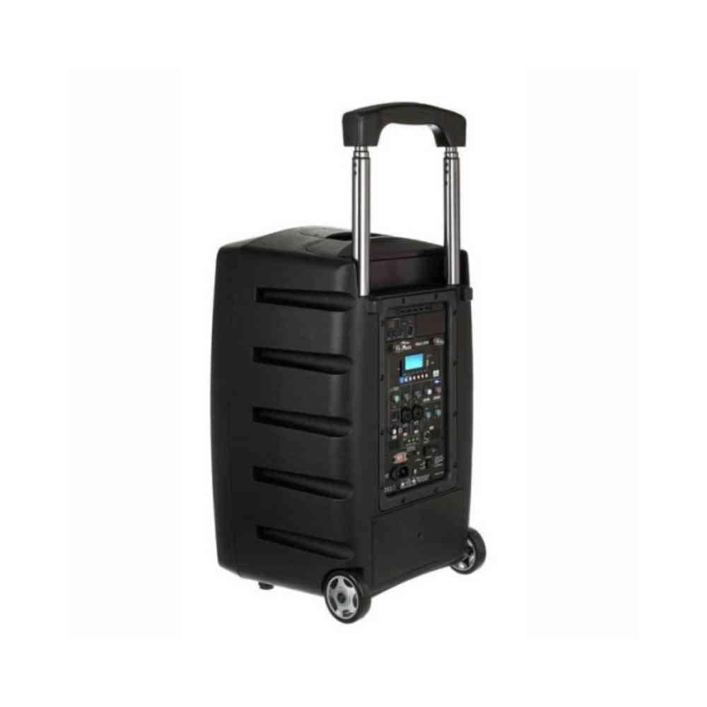سماعة محمولة متعددة الوظائف مع تشغيل بطارية، مثالية للاستخدامات الخارجية، العروض الحية، والخطب. تجمع بين قوة الأداء وسهولة التنقل بفضل تصميمها المزود بعربة نقل.