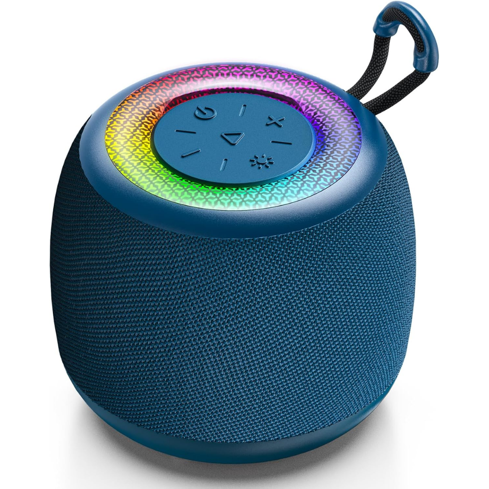 سماعة بلوتوث ميني محمولة JYX باللون الأزرق مع بطارية تدوم 24 ساعة، إضاءة LED، تكنولوجيا TWS ستيريو، فتحة بطاقة TF