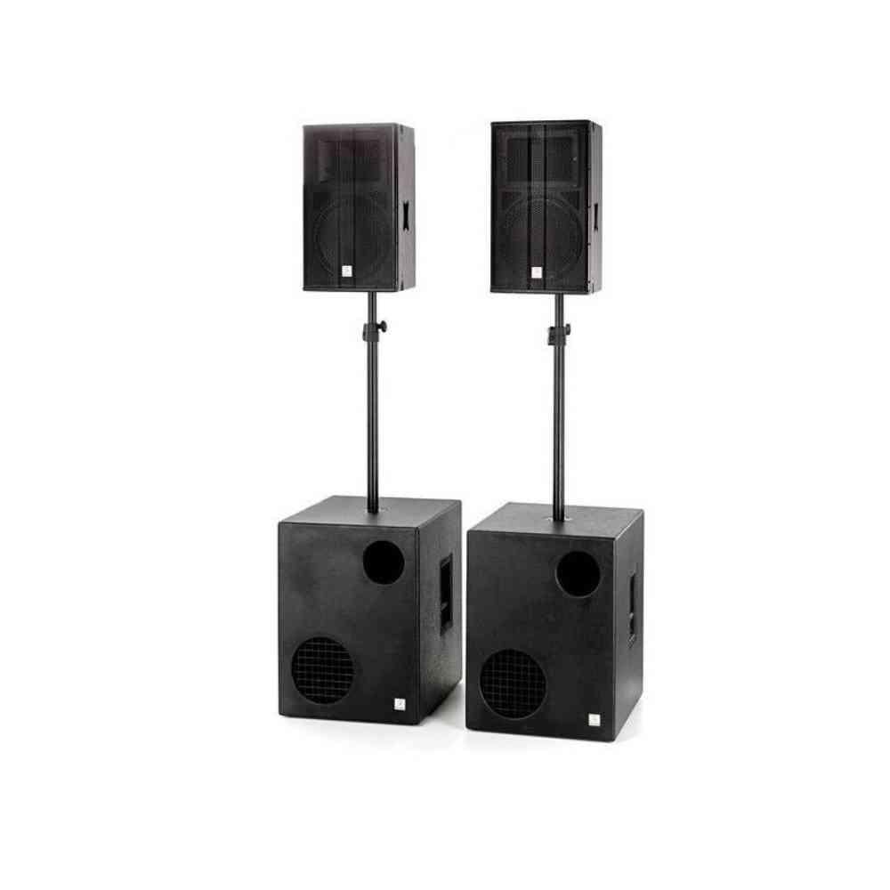 حل صوتي شامل وقوي يلبي احتياجات العروض الحية، والحفلات، والتجمعات الكبيرة، مع أداء استثنائي في النطاقات الصوتية المنخفضة والعالية.