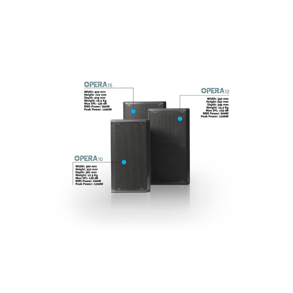 If you are looking for a powerful and accurate speaker, whether for concerts or musical events, OPERA 12 is the perfect choice. This speaker guarantees you an unparalleled audio experience.