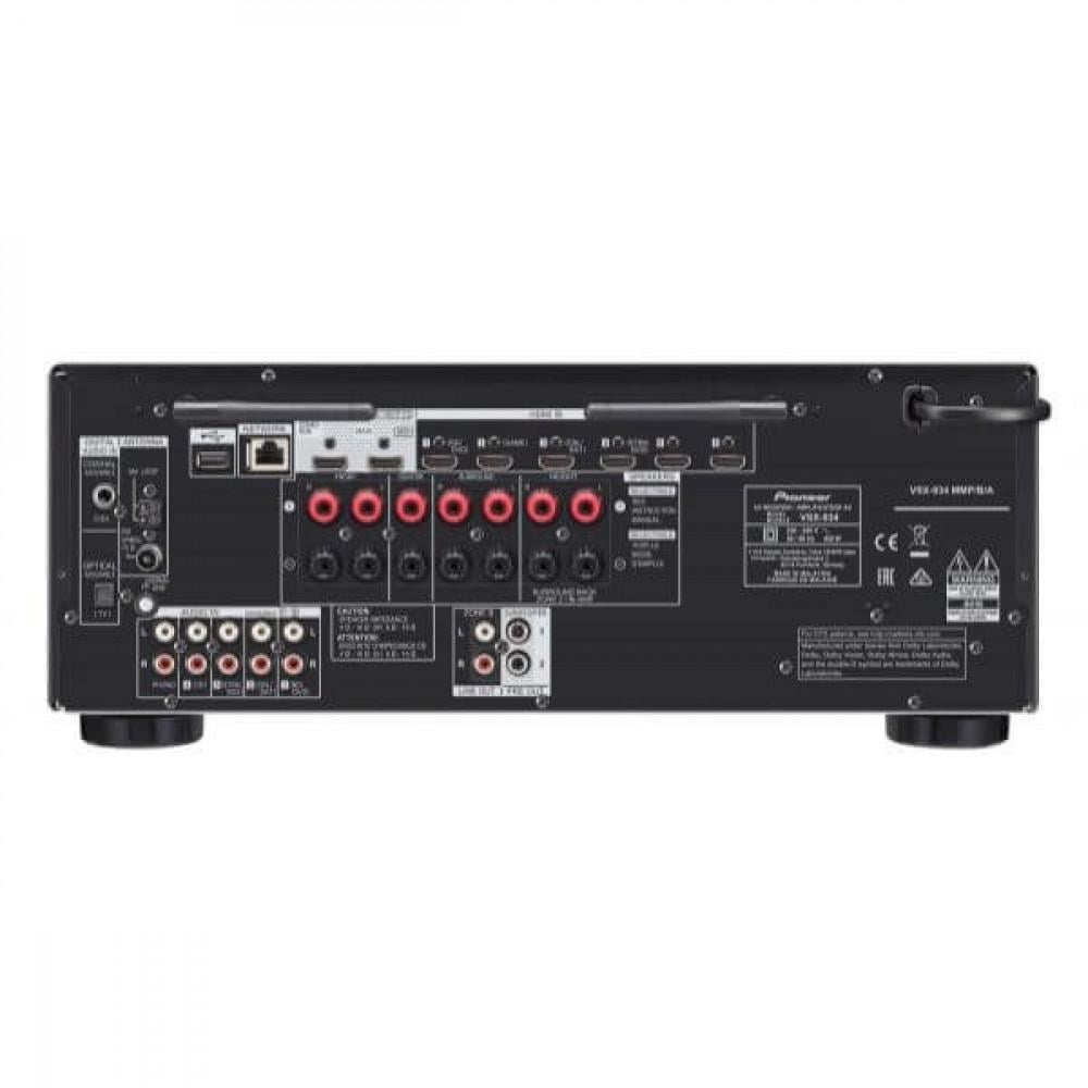 VSX-934 AV RECEIVER Immerse in 3D surround sound of Dolby Atmos® or DTS:X, or you can still enjoy similar effects by Dolby Atmos Height Virtualizer* and DTS Virtual:X* even without height or surround speakers. Featuring Ultra HD, HDR10, HLG, and Dolby Vision™ pass through with support for HDCP 2.2., the VSX-934 offers evermore life-like images. You can stream songs from various sources via Wi-Fi, Bluetooth®, DTS Play-Fi, SONOS system and Apple AirPlay 2*. Other highlights include Powered Zone 2 feature with a dedicated DAC, Personal Preset buttons, and 2 HDMI outputs.